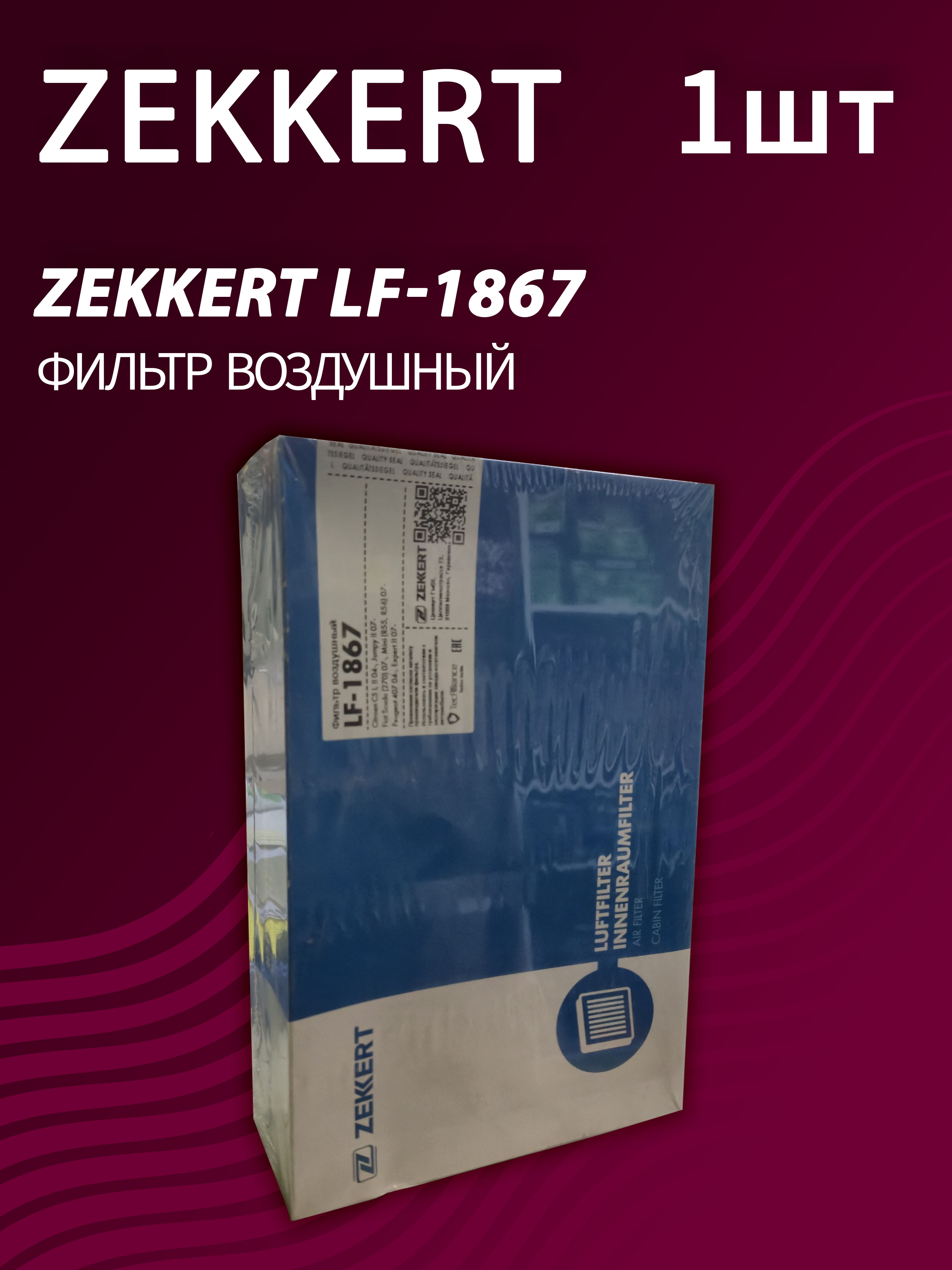 Воздушный фильтр Zekkert LF-1867 - элемент, который очищает воздух, поступающий в двигатель автомобиля, от пыли, мелких частиц и иных загрязнителей.