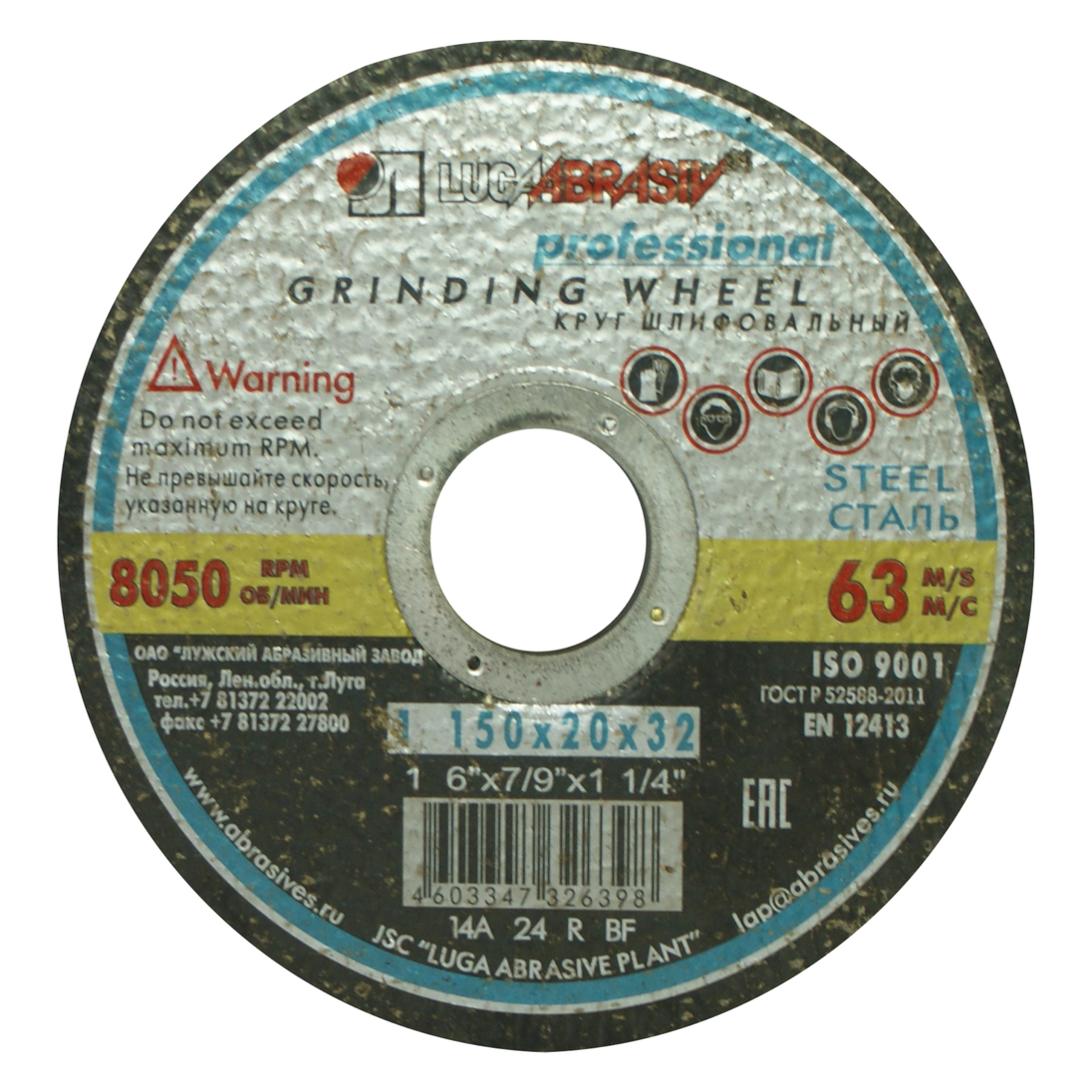 Варианты названия: Абразивный круг (диск) 150 х 20 х 32 14A Зерно 24; Круг прямого профиля 1 150 20 32 14А 24 R BF 63 Круг армированный на бакелитовой связке; 150 х 20 х 32 14A Зерно 24 8050 об/мин