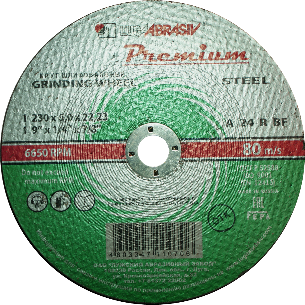 Варианты названия: Абразивный круг (диск) 230 х 6 х 22,23 A Зерно 24; Круг прямого профиля 1 230 6 22,23 A 24 R BF 80 prem. Круг армированный на бакелитовой связке; 230 х 6 х 22,23 A Зерно 24 6650 об/мин