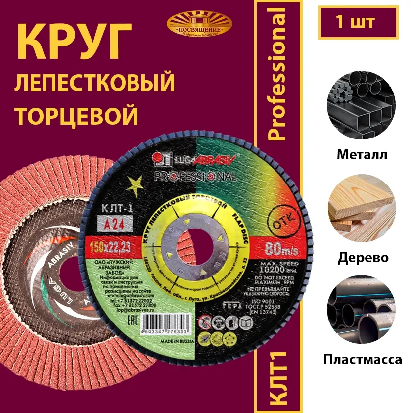 Варианты названия: Круг лепестковый торцевой 1 150 х 22,23 A Зерно 24; Круг лепестковый торцевой 1 КЛТ 1 150 22.23 Ткань A 24 80; Круг лепестковый торцевой 1 150 х 22,23 A Зерно 24; наждачная бумага 150 х 22,23 A Зерно 24; наждачка 150 х 22,23 A Зерно 24; Круг лепестковый торцевой 1 на связке Ткань 10200 об/мин