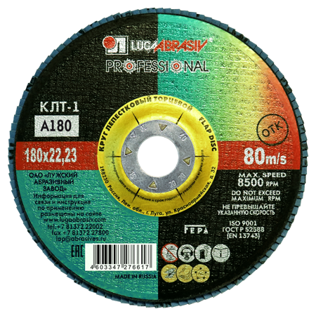 Варианты названия: Круг лепестковый торцевой 1 180 х 22,23 A Зерно 180; Круг лепестковый торцевой 1 КЛТ 1 180 22.23 Ткань A 180 80; Круг лепестковый торцевой 1 180 х 22,23 A Зерно 180; наждачная бумага 180 х 22,23 A Зерно 180; наждачка 180 х 22,23 A Зерно 180; Круг лепестковый торцевой 1 на связке Ткань 8500 об/мин