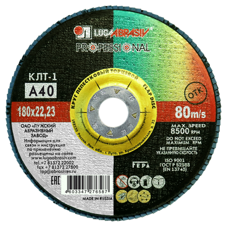 Круг лепестковый торцевой 1 КЛТ 1 180 22.23 Ткань A 40 80