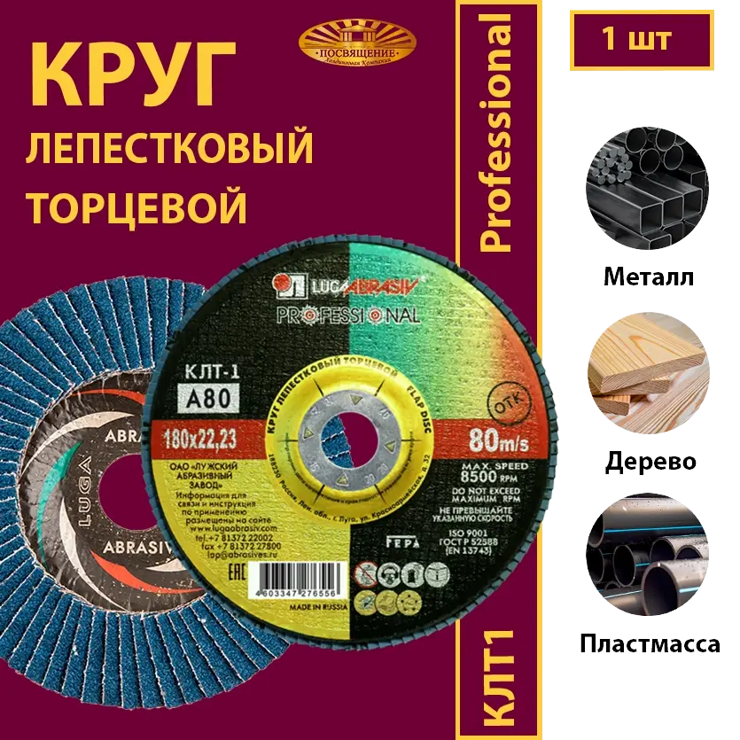 Варианты названия: Круг лепестковый торцевой 1 180 х 22,23 A Зерно 80; Круг лепестковый торцевой 1 КЛТ 1 180 22.23 Ткань A 80 80; Круг лепестковый торцевой 1 180 х 22,23 A Зерно 80; наждачная бумага 180 х 22,23 A Зерно 80; наждачка 180 х 22,23 A Зерно 80; Круг лепестковый торцевой 1 на связке Ткань 8500 об/мин