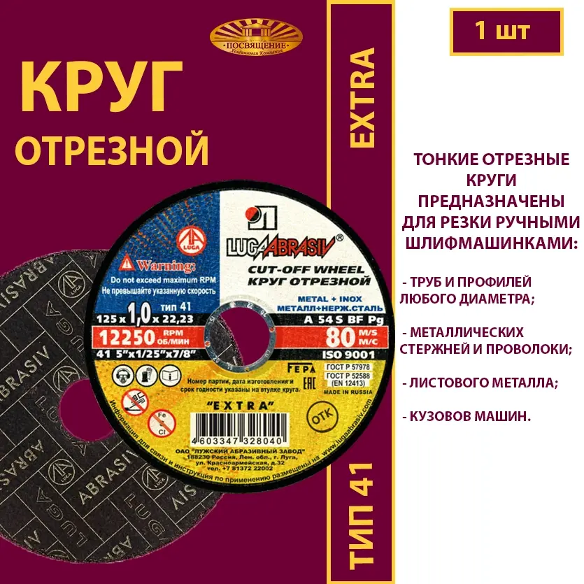 Варианты названия: Абразивный круг (диск) 115 х 1,6 х 22,23 A Зерно 40; Круг отрезной 41 115 1,6 22,23 A 40 S BF 80 мет.+нерж.ex. Круг отрезной армированный; 115 х 1,6 х 22,23 A Зерно 40 13300 об/мин