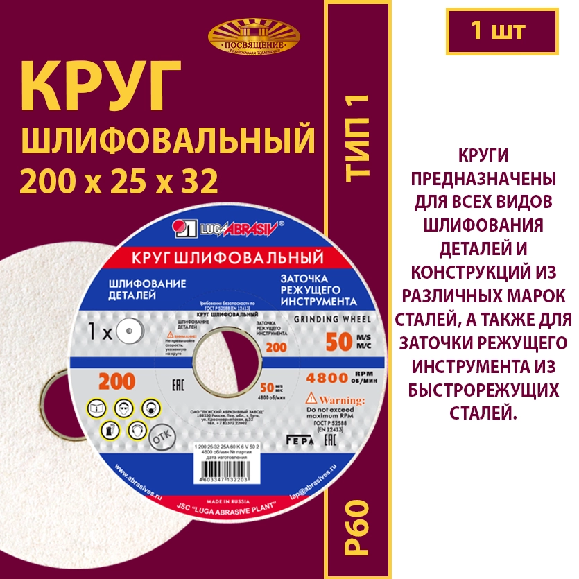 Круг прямого профиля 1 125 10 32 25А 60 K 6 V 50