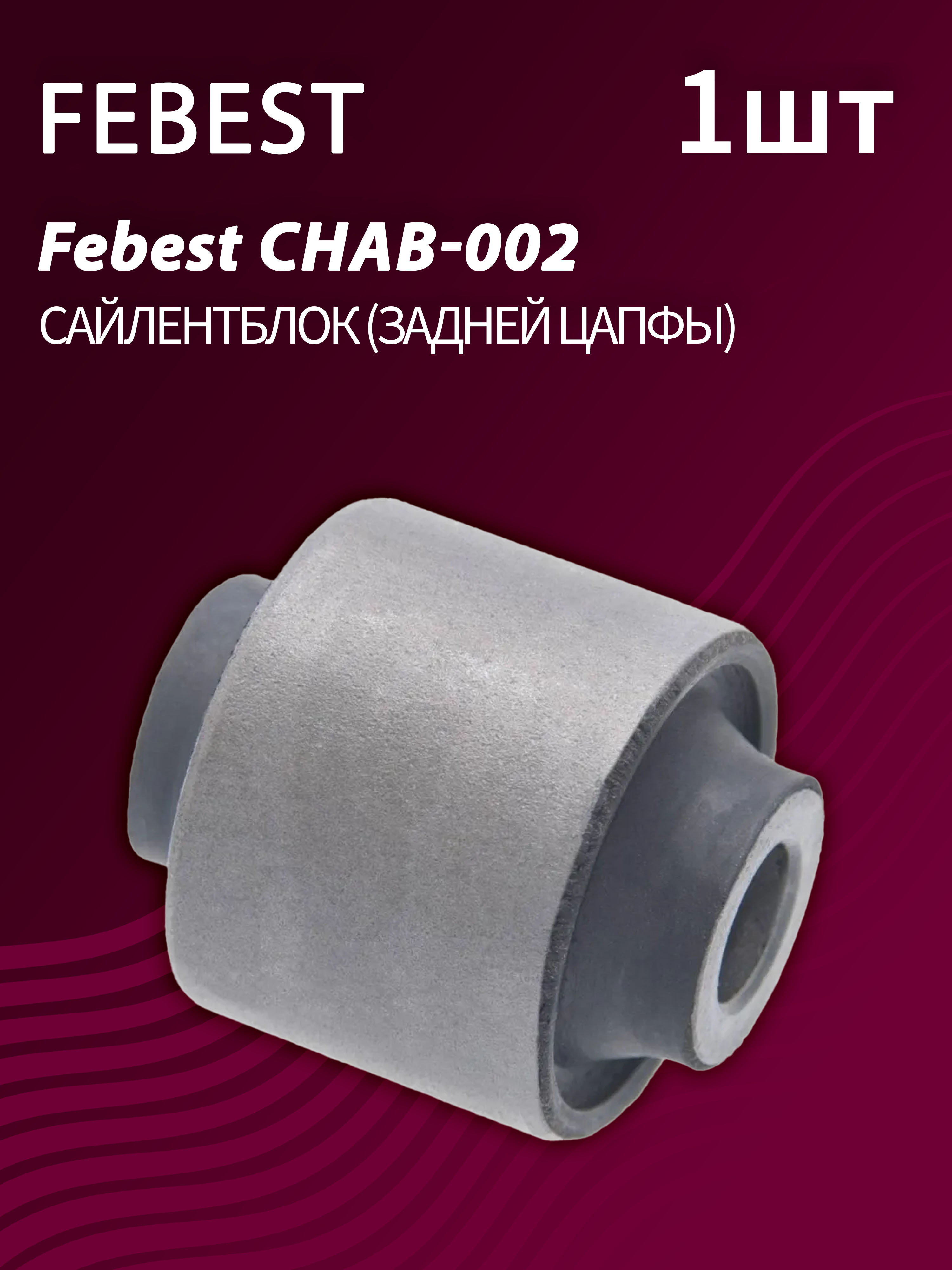 Сайлентблок задней цапфы Febest CHAB-002 нужен для демпфирования вибраций и снижения ударных нагрузок между элементами подвески